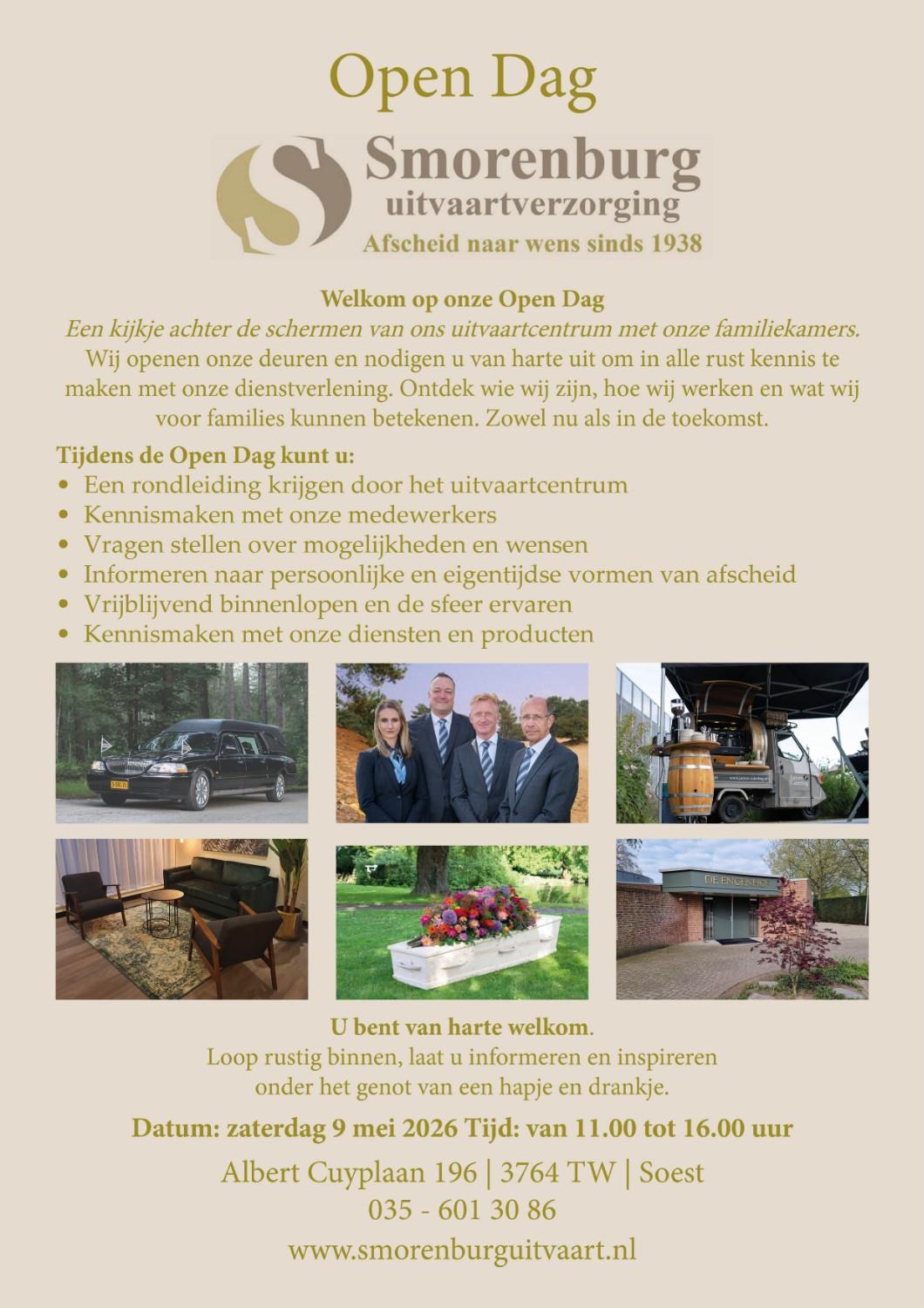 Open Dag Uitvaartverzorging Smorenburg zaterdag 9 mei 2026